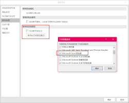 8. 在这里,你可以看到两个选项:“在浏览器中打开附件(需要安装相应的预览程序)”和“使用outlook内置的预览器预览附件”。将这两个选项前面的勾选去掉。