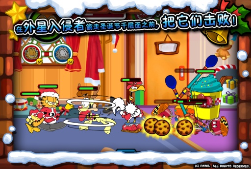 加菲猫到了圣诞节也会兴奋起来,为了保卫节日带来了这款卡通风格攻防塔防游戏。