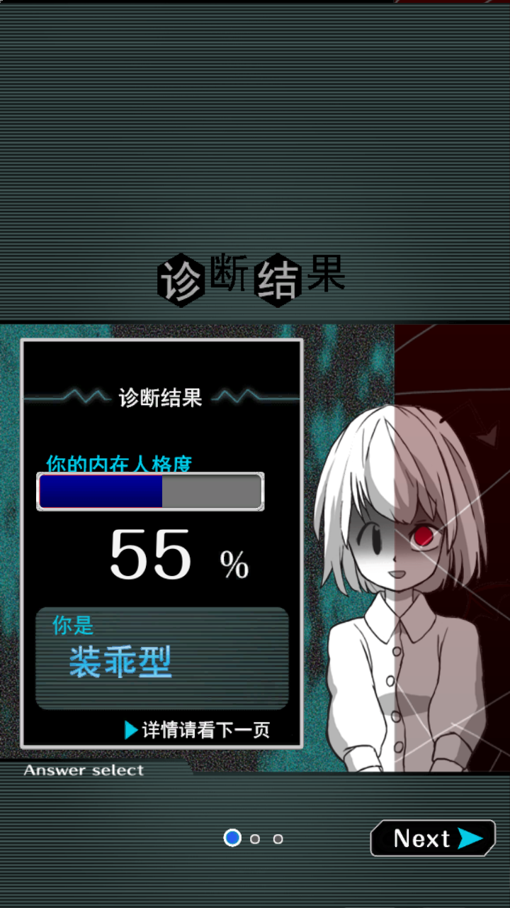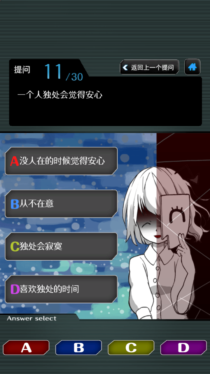 《内在人格诊断 汉化版》是一款充满趣味的休闲类手机游戏,每个人的心中都有一些隐藏的很深的秘密,或许是事,或许是人,有没有想过自己的内心住着一位小恶魔或者纯洁的小天使呢,赶快来这里测试一下吧!