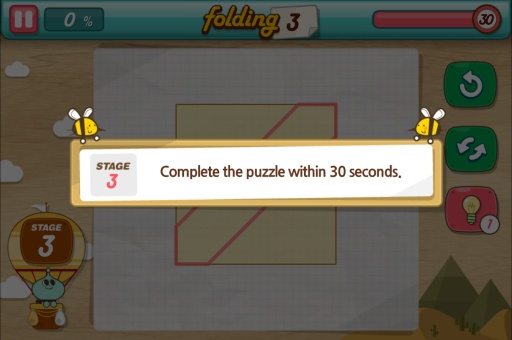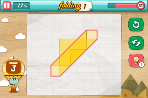《趣味折纸(Let's Fold - Origami Puzzles)》是一款考验智商和动手双项能力的益智游戏,玩法很简单,在规定的时间内,将白纸全部折进红线的框内即告胜利。游戏操作很简单,点击白纸任一部分拖动到相应位置松开,完成折纸,淡然你还可以再次修改,但要注意时间。