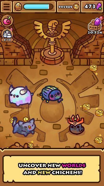 除此以外,你还可以用紫色的魔法羽毛购买蛋坑,开拓新的区域,与更多的小鸡见面