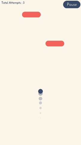 点击屏幕开始你的动作,仔细的控制你的球的运动,清新的游戏风格,简洁的画面,让你玩起来轻松没有压力,游戏并不是一个关卡形式的游戏,而是分为多个级别,只有通过一个级别才可以进入下一个级别,准备好开始你的动作,不要让你球产生碰撞,否则游戏失败。