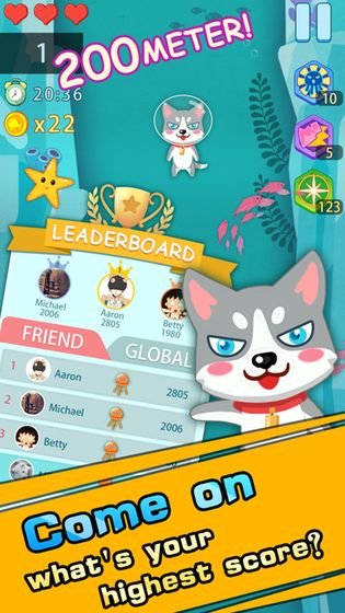 天天向下冲这款游戏画风很卡通Q萌,游戏中每天都可以选择多个角色哦,游戏中有着许多的关卡,游戏难度也是随着关卡慢慢递增的。这款游戏没有太多的操作,只需要玩家控制角色走入大海深处,完成各种冒险和挑战!