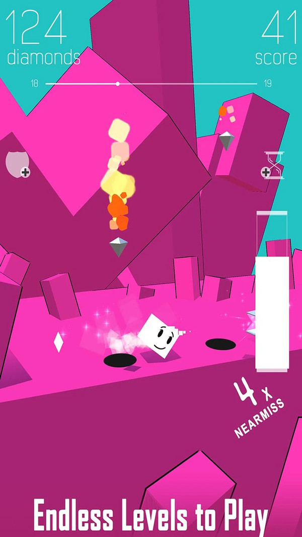 躲避方块君这款游玩起来很休闲,游戏中的造型设计都很可爱。这款游戏有着无尽与闯关两种模式,游戏场景也很多,玩家可以根据自己的喜好随意选择模式。