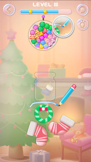 糖果狂欢是一款是款好玩的休闲类游戏,这款游戏画面卡通,游戏背景音乐轻快,还有各种美味的糖果,在游戏中玩家需要将上方糖果的出口路线画出,让糖果顺利的掉落进糖罐里才算完成任务哦,喜欢这款游戏的朋友快来下载畅玩吧。