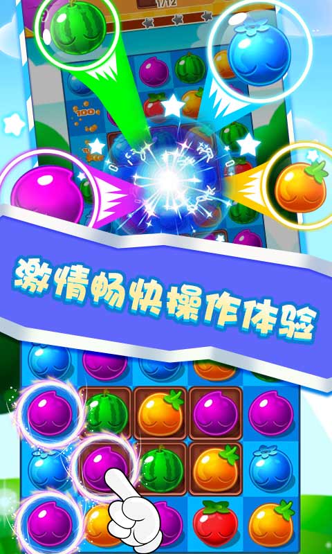 2.最经典的玩法模式,移动相连之间的水果,完成消除即可;