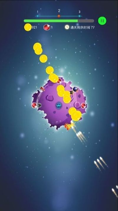 轰炸行星这款游戏的画面精致,音乐刺激。游戏的操作方法简单,玩家们只需要单指简单操作就可以了。大家摧毁行星,升级武器,快速点击碍,赢得宝石,轻松过关。
