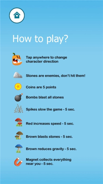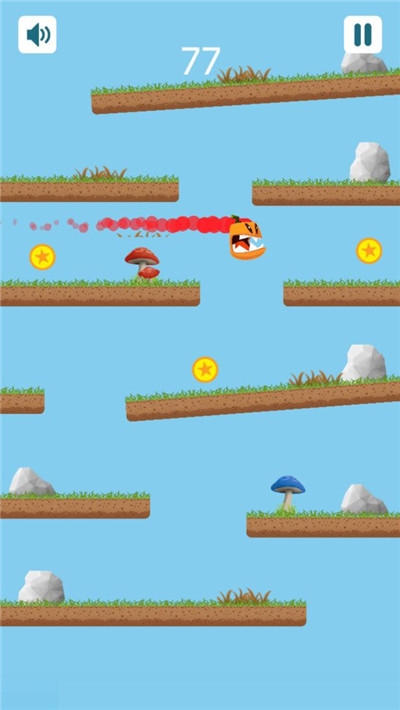 1、玩家只需控制南瓜移动它前进的方向,不需要移动任何其他东西,然后寻找空隙跳跃。