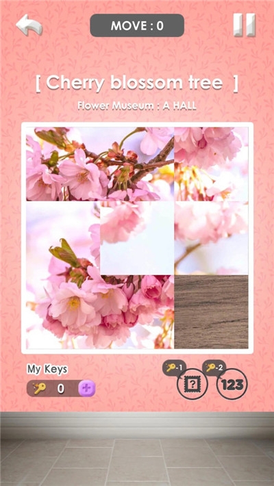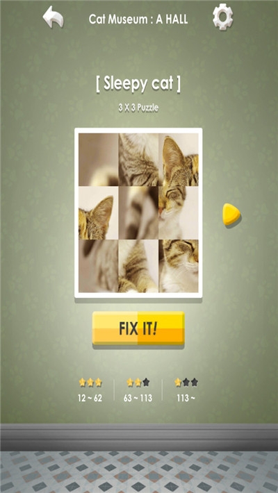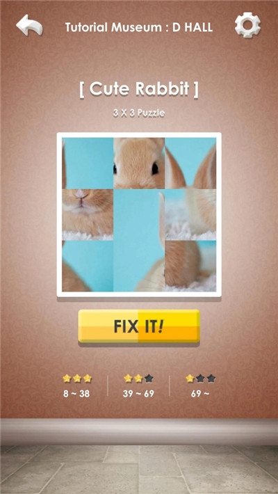 2、每一幅拼图都有自己的名字,难度也是有区别的,简单和困难所花费的步数和时间是不同的;