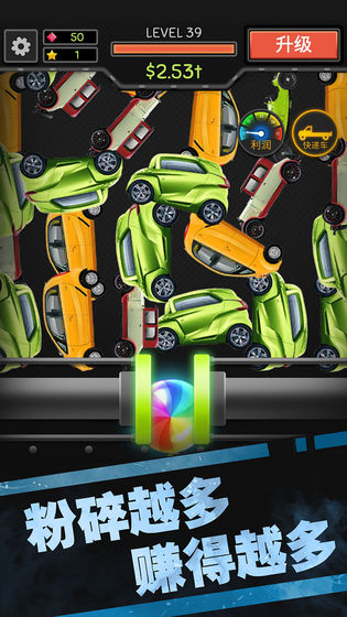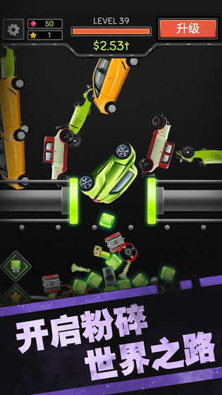 1、享受魔性的粉碎挑战吧,用你的机器来碾碎各种各样的汽车并升级你的工厂;