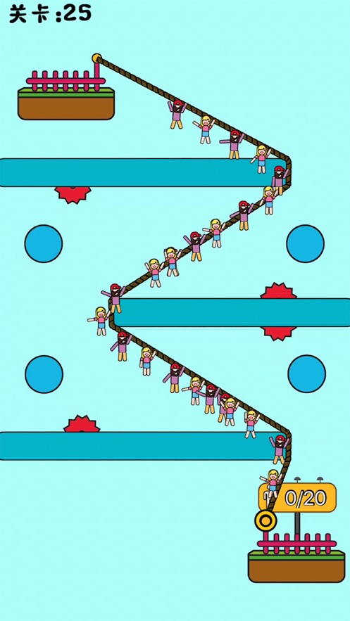 2、手指画线操作,当你牵起的绳子救下全部被困的人,闯关成就感让你满足。