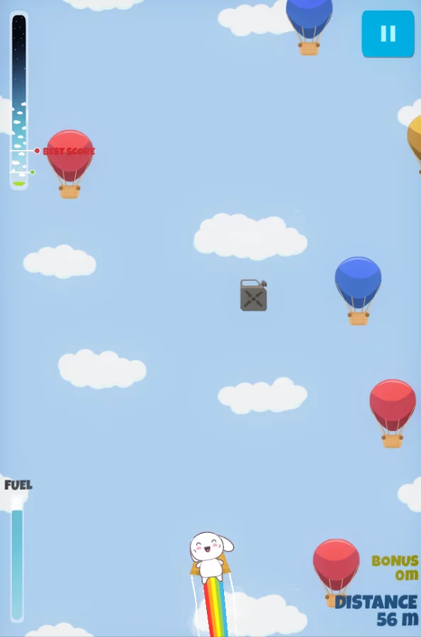 Let Me Fly是一款非常有趣的休闲小游戏。游戏中玩家操控自己的宠物,让它不断的飞行,吃到空中的道具会获得很多分数,当然也有很多障碍物,一定要小心,及时躲避。