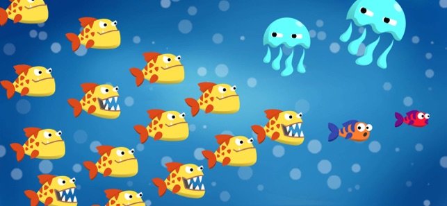 鱼群快跑是一款非常好玩的休闲冒险类手游,这款游戏界面简约,游戏中玩家将带领着鱼群进行遨游,要小心各种鱼群的攻击,让你的种族不要受到任何的伤害安全的到达平安地点。