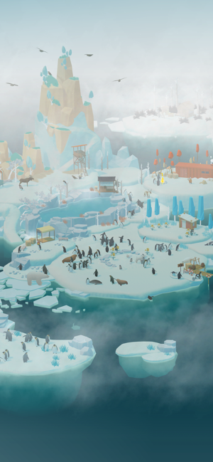 1、这款游戏的背景是美丽壮阔的南极洲,上面有很多美丽的风景,并且还能看到远处的海洋。