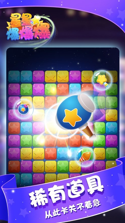 星星爆爆爆是一款充满乐趣的休闲闯关类手游,这款游戏中玩家将根据要求进行对应的消除,完成每一关的关卡任务,这款游戏玩法简单,上手也很容易,此外游戏有着海量的关卡,不会让玩家觉得无聊哦。