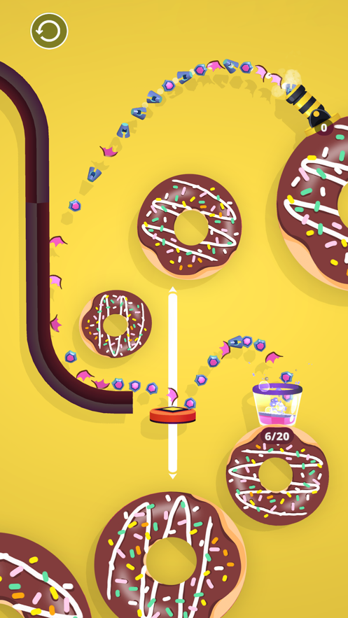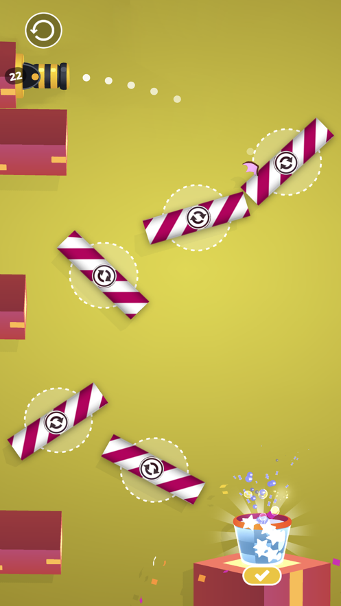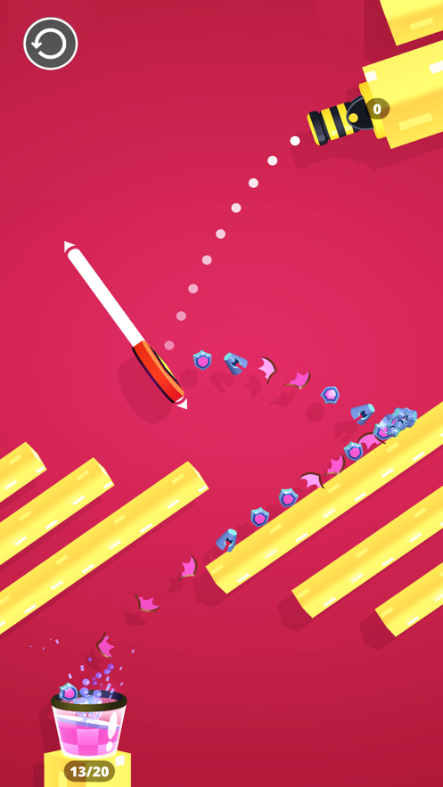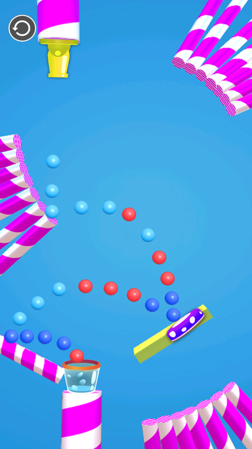 2、游戏中玩家需要操控一口加农炮,借助障碍物的物理反弹,将规定数量的小球射进杯子即可过关;
