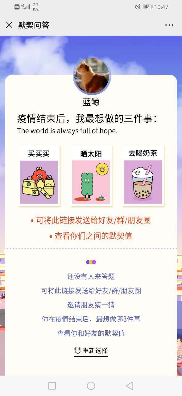 完成选择提交一键出测试结果,看你和她的默契有没有达到90%。