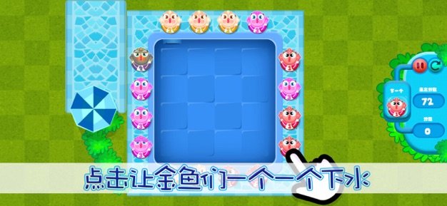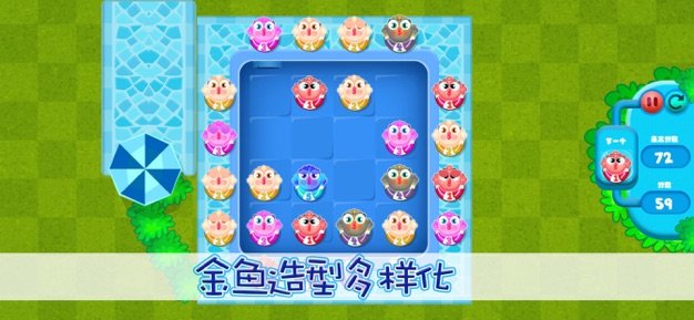 1、游戏画面简单清爽,还有各种颜色的金鱼,十分的可爱;