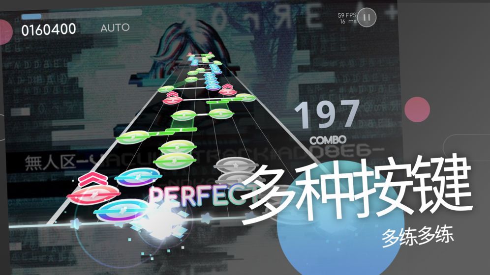 3、超多不同的按键,你将要如何在一瞬间去同时按动他们了,这就需要依靠玩家的本事了