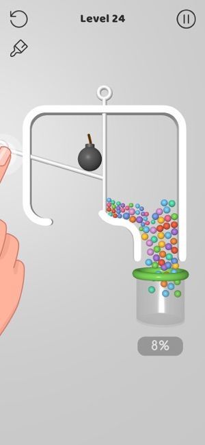 1、否则将会把小球给炸毁,而且玩家抽洞别针的时候还需要将灰色的小球控制与a彩色的小球混合;