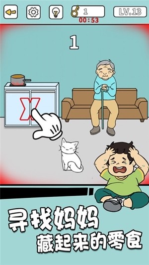 这是一款搞笑益智的解谜闯关手游,游戏关卡众多,你需要做的就是找到被妈妈或者老师收藏起来的零食,同时还不能被她们发现,玩家在玩游戏的时候需要时刻注意游戏中提供的线索,这是找到零食的关键哦。