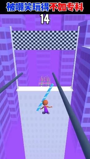 我大意了这款游戏非常的休闲,玩家将会手持一个长棍进入到游戏当中。各位小伙伴们要做的就是不断收集路上的道具,这样你的棍子就会变得越来越长,只有达到一定规模才能度过各种难关哦。