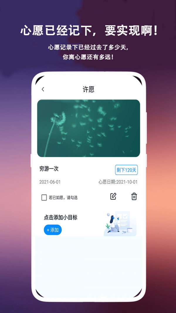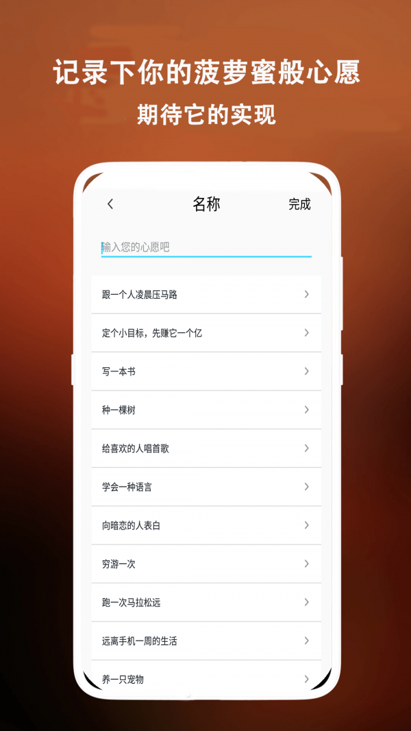 添加自己的心愿清单,鼓励自己体验更多新鲜事物;