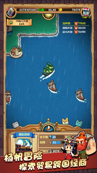 2. 资源管理:收集食物、木材、金币等资源,保障航行顺利。
