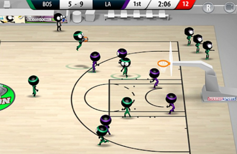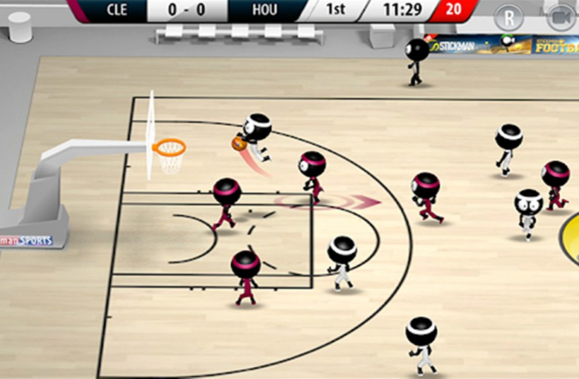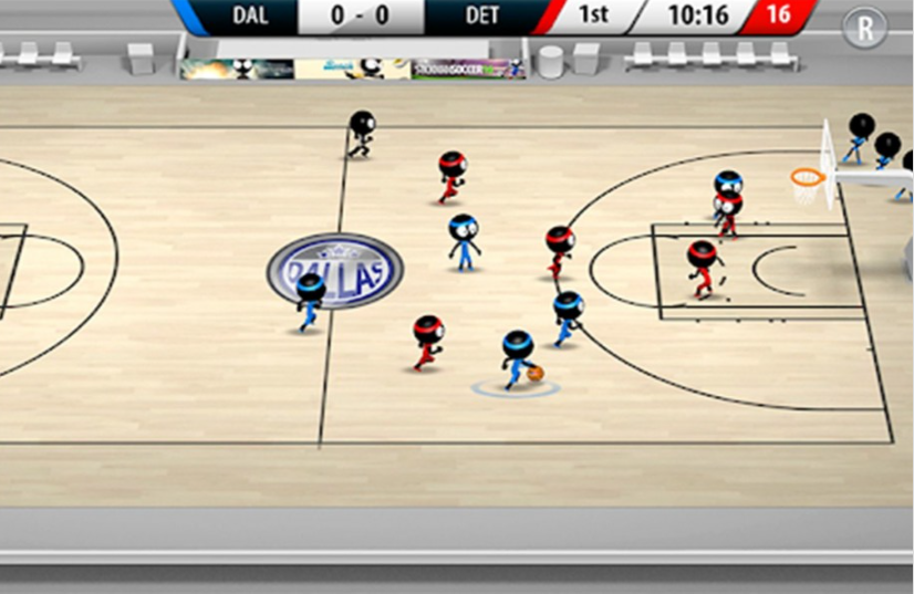 1. 操控火柴人球员在篮球场上灵活移动,通过虚拟摇杆控制方向,点击按钮实现投篮、传球、防守等动作。