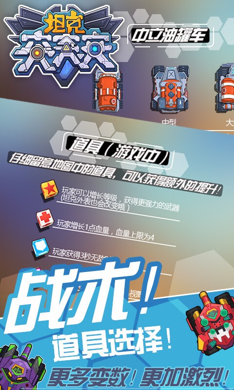 1. 多种坦克可供选择,每种坦克都有独特性能。