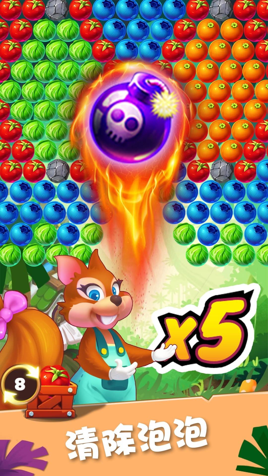 泡泡农场大作战最新版是一款超有趣的安卓游戏。在游戏里,玩家置身于充满奇幻色彩的泡泡农场世界。操控角色轻松发射泡泡,与各种可爱动物互动。通过精心规划布局,巧妙消除泡泡完成任务,解锁丰富关卡与装饰道具,体验独特的农场经营与消除冒险之旅。