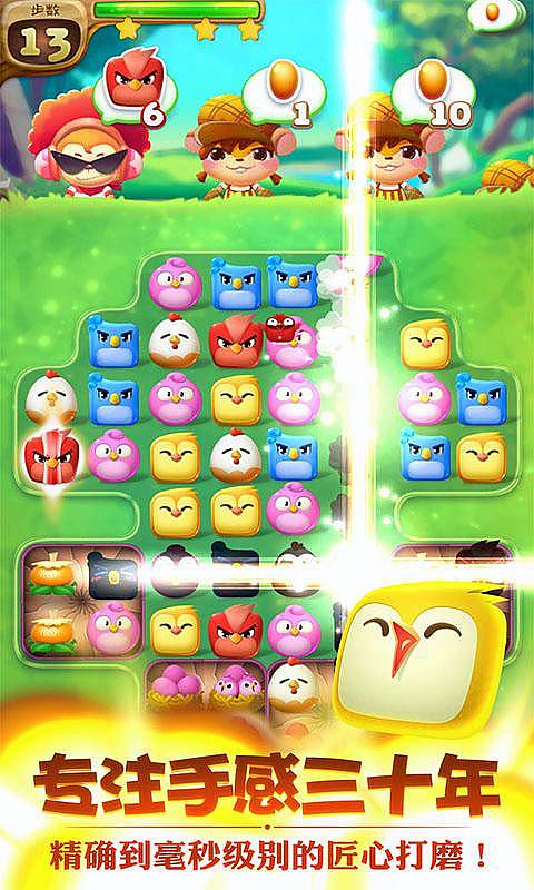 1. 玩家需操控萌鸟进行各种操作,以达到消除目标。
