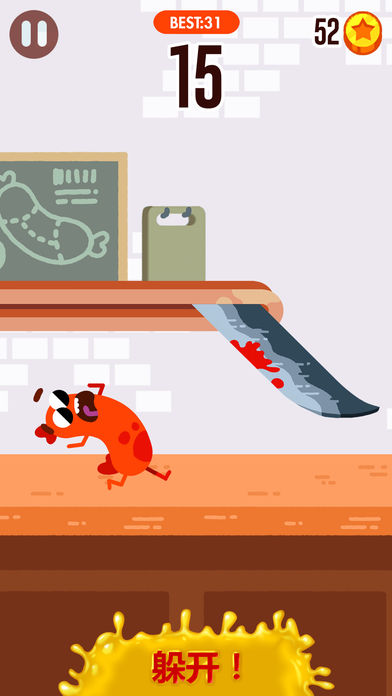 1. 操控香肠在充满障碍的赛道上奔跑,躲避如尖刺、陷阱等各种危险。