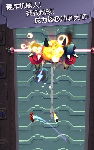 《撞击大师国际版》是一款融合科幻元素与动作闯关的安卓手游,玩家将操控搭载爆发引擎的人工外装机器人,在二十年前外星机器人入侵后的废土世界中展开反击。游戏以横版闯关为核心玩法,玩家需突破外星人严密的防卫网,摧毁敌方攻击塔以夺回地球。通过跳跃、冲刺、导弹发射等操作,结合科技无人机辅助与装备升级系统,玩家可逐步解锁更强大的外骨骼套装。游戏采用卡通渲染风格,将激烈碰撞与飞行射击的视觉效果呈现得极具冲击力,配合快节奏的电子音效,营造出紧张刺激的太空战场氛围。