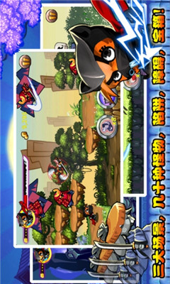 1. 核心玩法:玩家通过左右虚拟按键控制喵忍移动,点击跳跃键规避陷阱,长按可实现二段跳;战斗中点击技能图标释放火球术、影分身等忍术,或投掷铁飞镖、穿透镖等五种武器消灭敌人。部分关卡需利用旋风斩清屏或召唤远古神鹰飞行跨越障碍,操作上限极高。