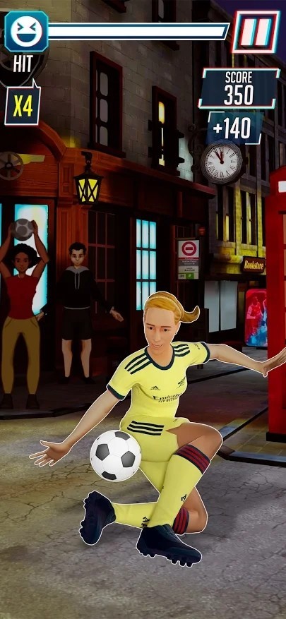3. 角色成长系统:玩家初始可选择萨卡、马丁内利等5名球员,通过关卡奖励解锁赖斯、哲凯赖什等高价球星。每位球员拥有专属技能,如萨卡的“极速变向”可提升动作衔接速度,厄德高的“精准控球”能延长颠球时间。升级需消耗“技巧点数”,通过重复挑战关卡或完成每日任务获取。