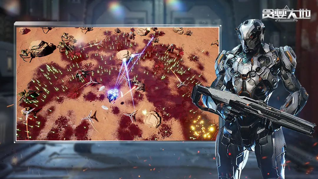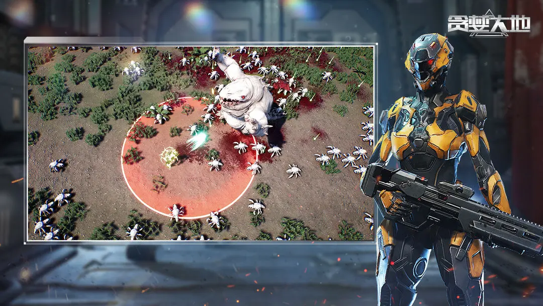 《贪婪大地正版》是一款以虚幻5引擎打造的俯视角肉鸽幸存者射击手游,玩家将化身星际佣兵深入名为“贪婪大地”的异星边境,在潮水般涌来的异星生物围攻中执行净化任务。游戏融合了《血腥大地》的割草爽感与《吸血鬼幸存者》的肉鸽策略,通过武器组合、技能升级与芯片构筑打造个性化战斗体系,支持本地双人及未来4人联机模式,配合千怪同屏的震撼视觉与动态难度设计,为玩家提供兼具策略深度与操作爽感的太空冒险体验。