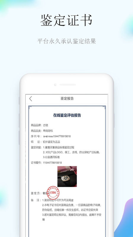 奢易买app是一个专业的奢侈品鉴定闲置转卖平台,奢易买app为用户购买奢侈品交易提供鉴定服务,鉴定服务支持各种箱包,首饰,服饰,鞋靴,手表等众多种类。奢易买app平台提供鉴定证书,便于电商购买维权,永久有效。
