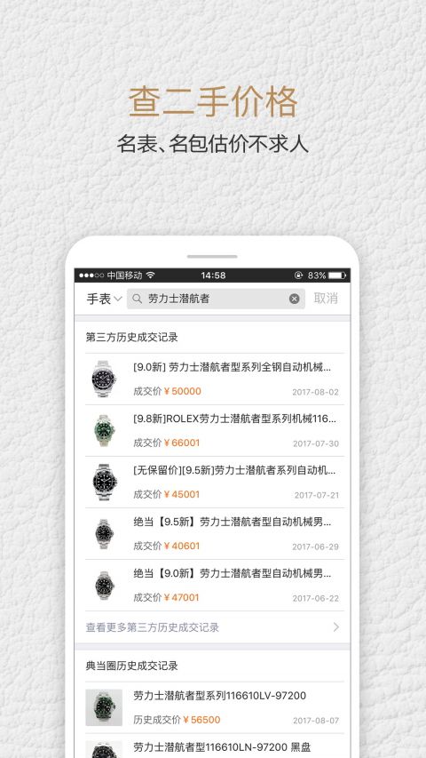 4、价格查询:编制二手价查询系统,为用户提供准确、真实、透明的二手奢侈品行情价格。