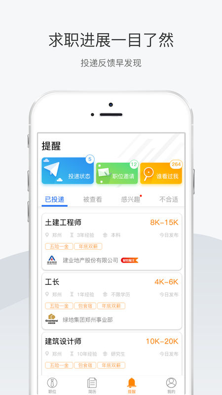 2、更即时的求职进展:有投必应,YesorNo都会痛痛快快给个交代简历像快递一样有迹可循,应聘进展一目了然。