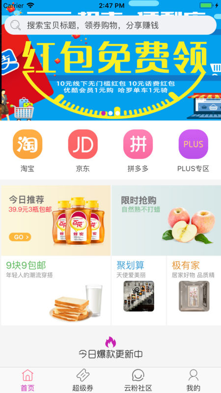 云购堂app是一款新时代创新型的软件,云堂购app以精品多功能电商导购为主要业务。云堂购APP集聚了淘宝、天猫、京东、拼多多等电商巨头平台的优惠券和佣金,每日精选高额优惠券是我们的优势特点。