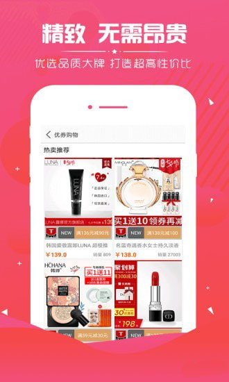 优券购物app内部隐藏优惠券,每天发布超10万优惠券!先领券后购物立省10%~60%以上,汇集淘宝、天猫、京东、唯品会等海量的精品商品。
