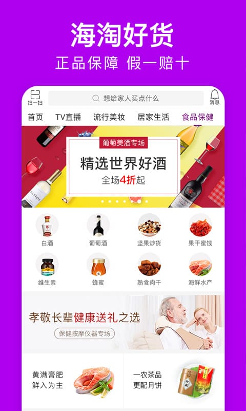 4、环球精选:惠聚新品、今日特卖、跨境直购、乐享活动五大频道全新上线,手机下单更多优惠。