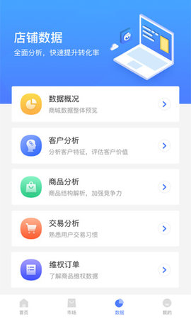 5、数据监控:每天可查看自己的店铺信息,包括商品、用户信息,让你更好的做出经营决策。
