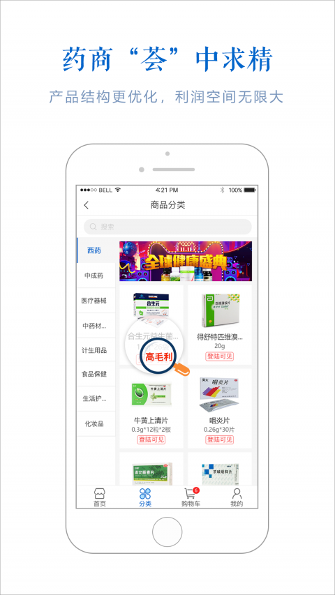 药品品类齐全,药荟手机版汇集优质合作商家,价格优惠,质量保障,一站智能采购,方便快捷。