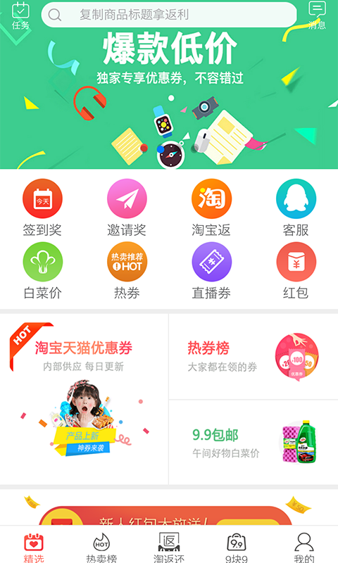 1、精品优选:精选商品,低价超值,9块9包邮还有折扣。