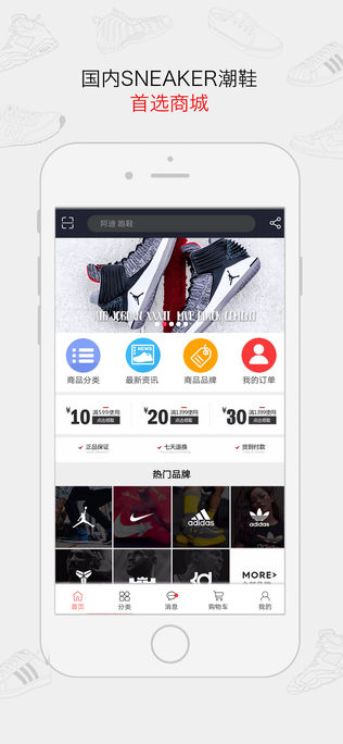 网上电商鞋子专卖店,全部正品鞋子,绝无虚假产品,耐克、阿迪、乔丹等多个品牌正式销售,都是从厂家直销而来,还有多种款式任你选择,更有优惠券等你来领取。