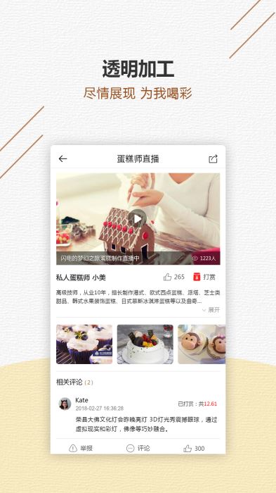 〖巧工坊直播〗:美丽的蛋糕师为您现场直播制作。