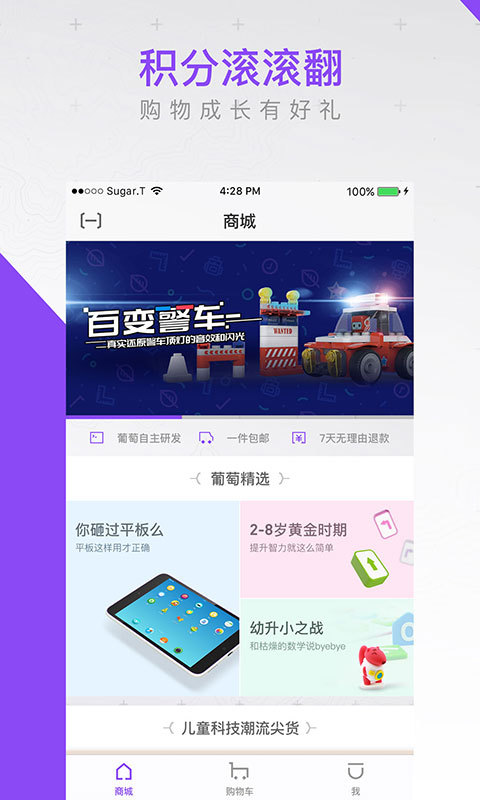 购买儿童玩具就来《葡萄乐园》!这款软件不仅能为你提供种类齐全的优质玩具商品,还可以让你在这款软件中享受到购物送积分的巨大实惠哟!感觉不错的话就赶快下载软件开始购物吧!