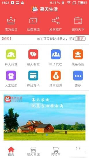 幕天生活app软件系统采用线上线下相结合的方式,致力于打造一个便民惠民的农产品销售平台,其功能有会员管理、购物车管理、商城购物、话费充值、优惠券管理、积分兑换等功能。